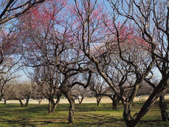 佐倉城址公園の梅林です。三分咲きといったところ。