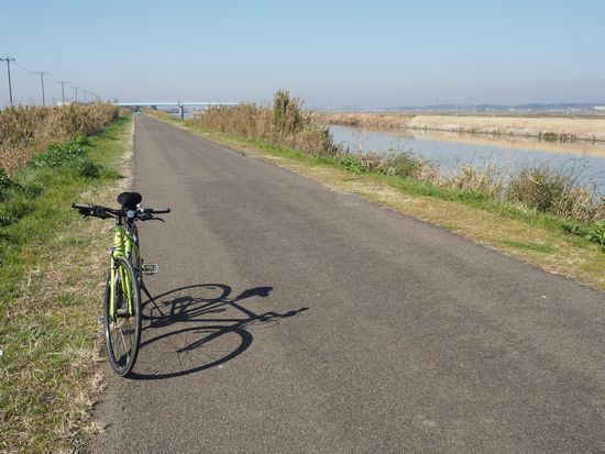 帰りの利根川サイクリングロード(茨城側)。菜の花が咲き出していました。
