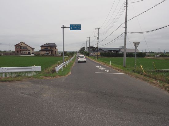 「一般農道 本新 3Km」の分岐。真直ぐは霞ヶ浦。左は稲敷大橋。