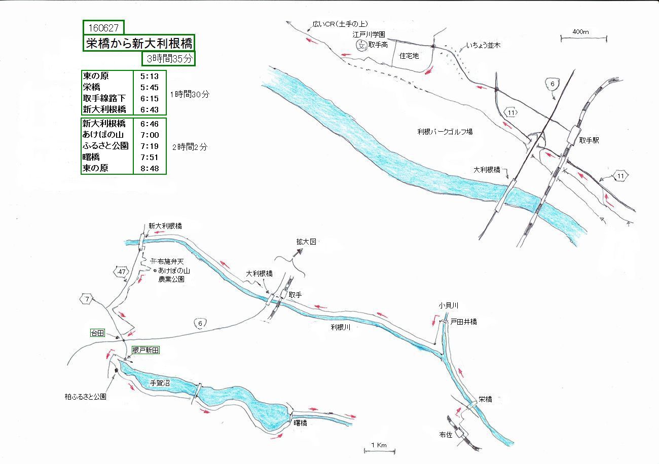 以前、利根川の栄橋から大利根橋(R6)まで、行きは茨城側、帰りは千葉側で周回してきました。それに引き続き、更に