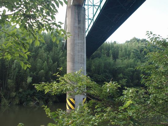 印旛沼捷水路から見上げた山田橋。