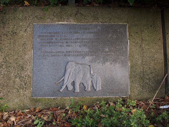 捷水路途中に、ナウマン象の化石の発掘地点の碑があります。