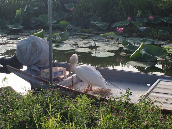 ふなとばし近くにいる、名物のペリカン。