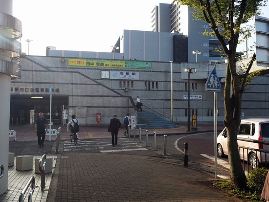 成田駅西口です。ここから左にやや下り、線路下をくぐります。