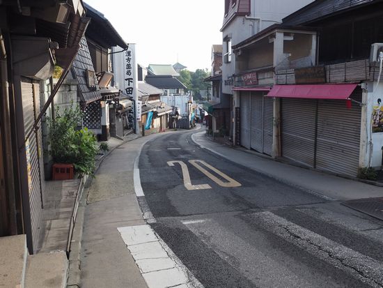 表参道を下ります。朝なのでシャッターが閉まっています。