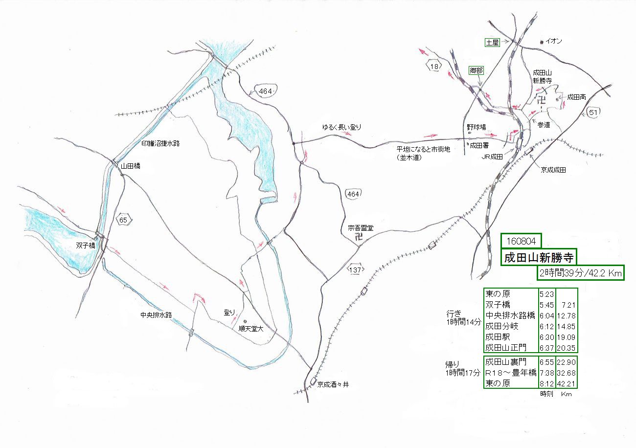南回りで行きましたが、山田橋を通って北回りも可能です、以前、房総の村から成田安食バイパスを経るルートで新勝