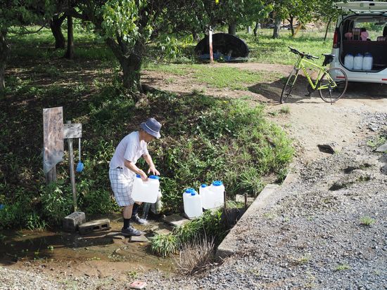 コース途中にある湧水。飲めるかどうか分かりません。おじさんとの会話。