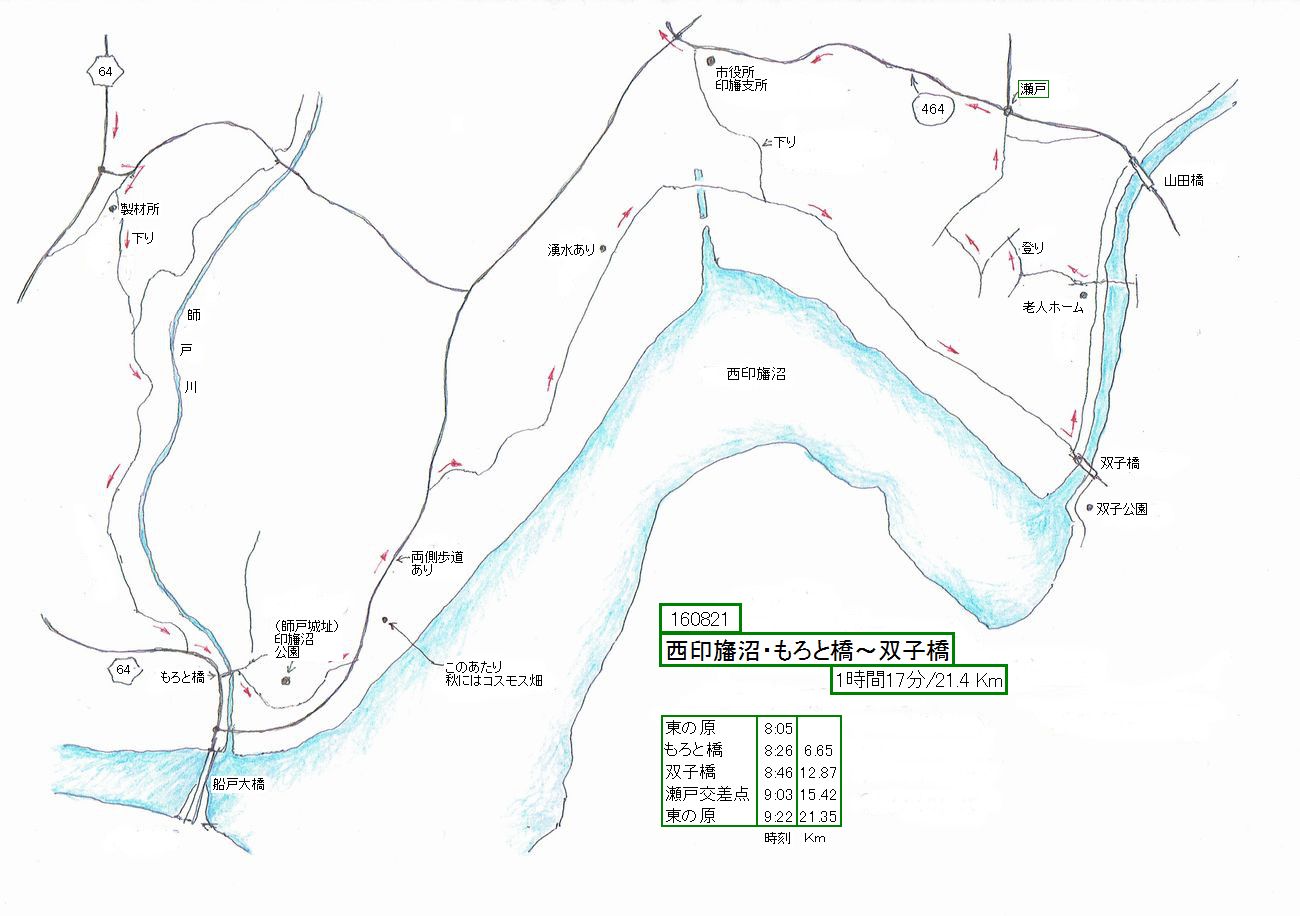 西印旛沼の北岸はサイクリングロードがなく、一般道です。そんなわけで、印旛支所から双子橋間以外は通ったことが
