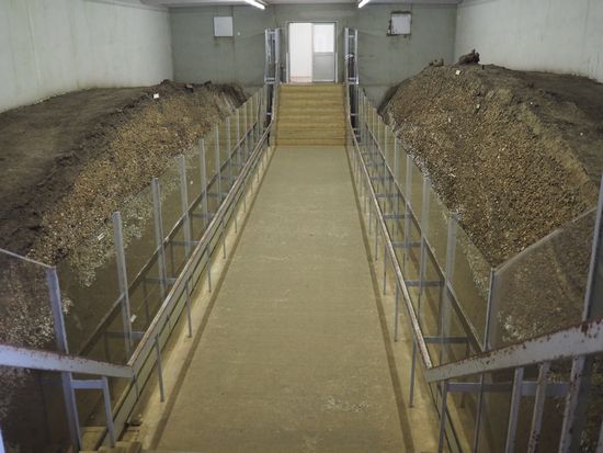 実際の貝塚に建物を被せた展示室。