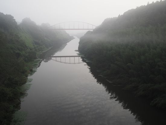 今回は山田橋経由で成田を目指します。霧が巻いています。