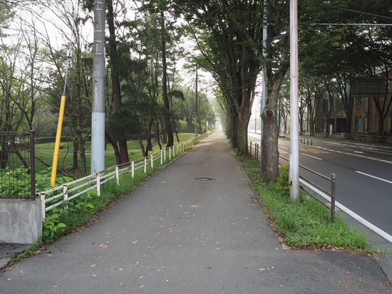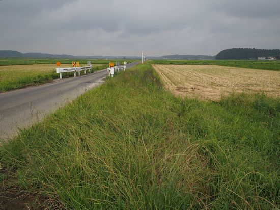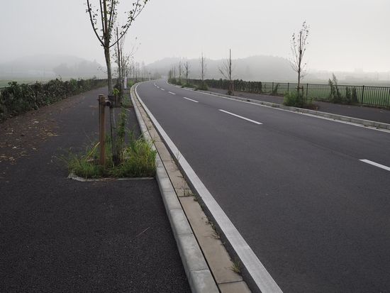 これは帰途の、中央排水路沿いの道です。