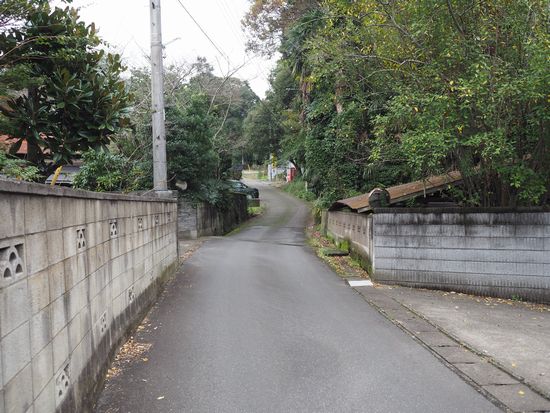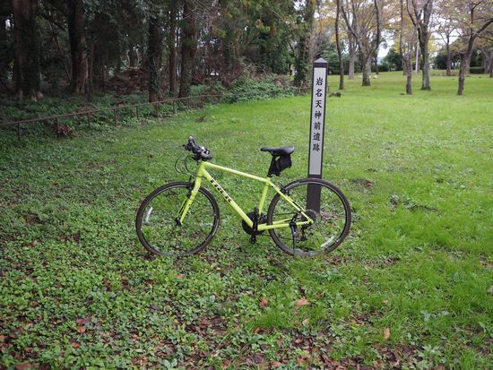 坂の上は岩名天神。その奥に、岩名天神前遺跡、の標識あり。