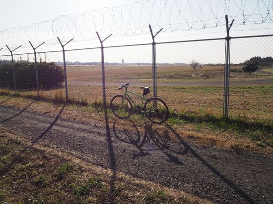 ここは基地北端の敷地内の通路。撮影ポイント。でも、この時は離発着なし。もう少し早く・・・。