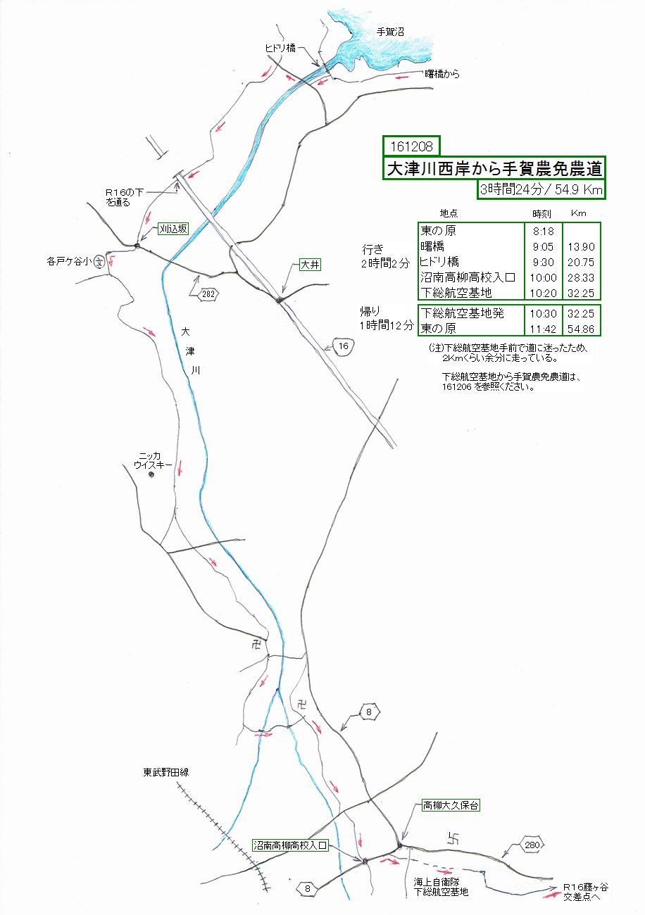 大津川西岸〜下総航空基地〜農免農道、という周回コースをとってみました。