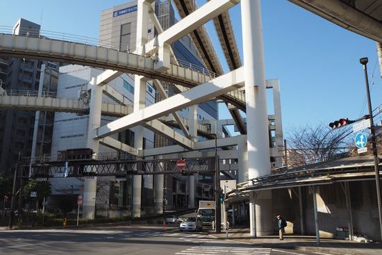 千葉駅近く。交錯するモノレールの軌道は、印西の片田舎から来た私には、未来都市の