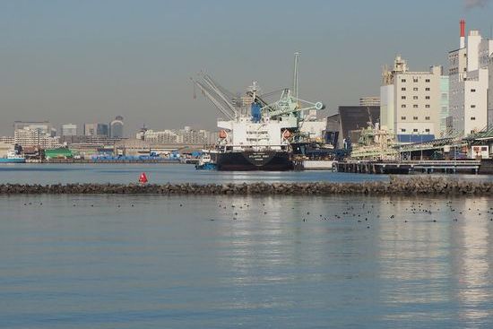 千葉港ですから各種の船が見られます。検見川浜には無い風景かと。