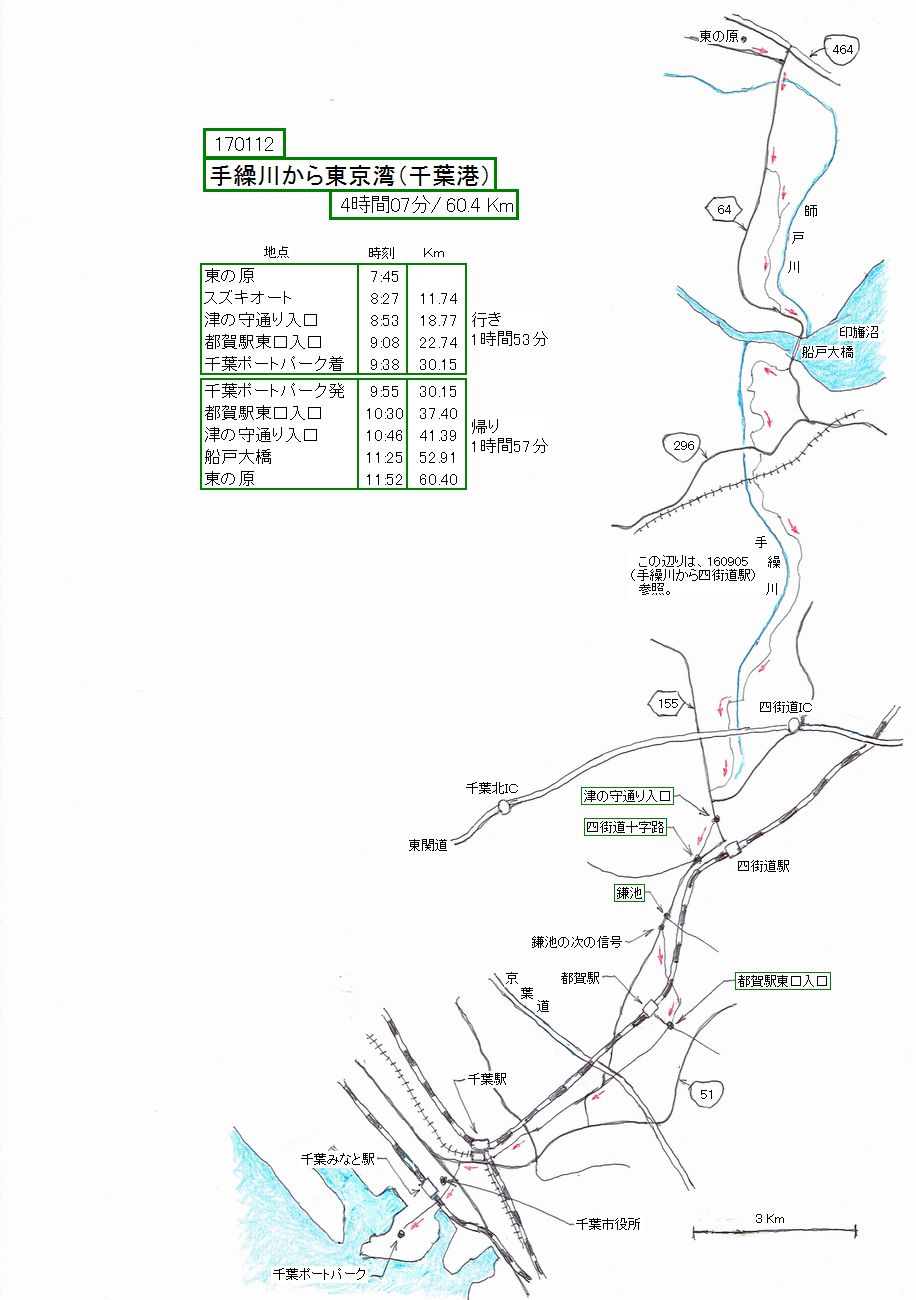 ってみようかと今回、寒い中を走ってきました。走行距離で云うと、千葉港まで30Km。花見川CRでは検見川浜まで28Kmです