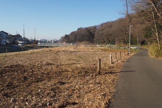 桑納川もだいぶ上流です。新京成線沿いの人家が見えてきました。川の上流、源流ほど