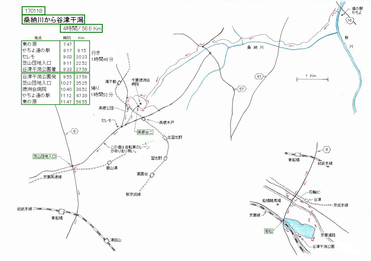 船橋付近在住の人が印旛沼に行く時に、この桑納川(かんのうがわ)谷津道を使うようです。走ってみましたが、快適でした。