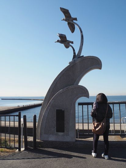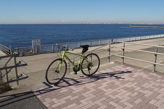 検見川浜に着きました。冬晴れの東京湾の向こうには富士山が見えています。