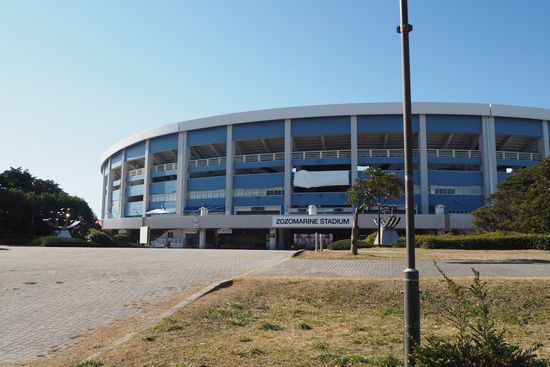 マリンスタジアム。この辺りでR15を渡り、海側の歩道に移ったほうが良い。その方が