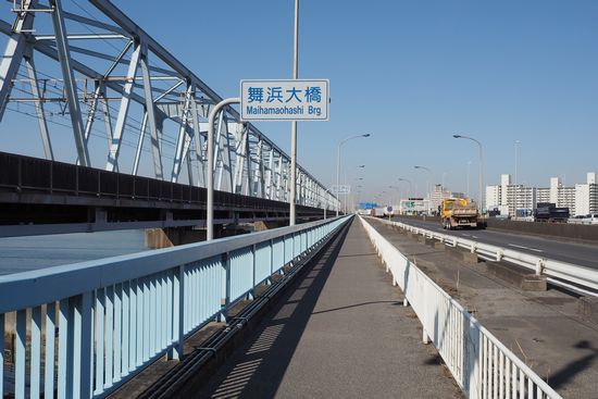 舞浜大橋で旧江戸川を渡ります。もうすぐ葛西です。