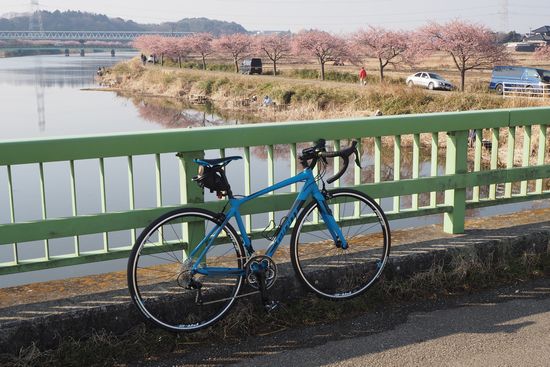 桜と私の新しいロードバイク。 レースに出るわけでもないので、アルミフレームの平凡な
