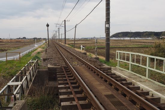九十九里浜も近づき、総武本線を渡ります。単線なんだ・・。