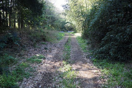 R53を横断して2.5Km谷津道を進むと、左の林の中を登る未舗装路が現れ、これを登り
