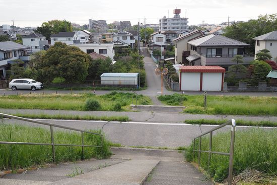 江戸川CRに出たところから来た方向を撮っています。画面中央の道をやって来て、手前の階段
