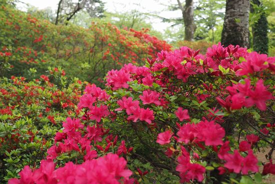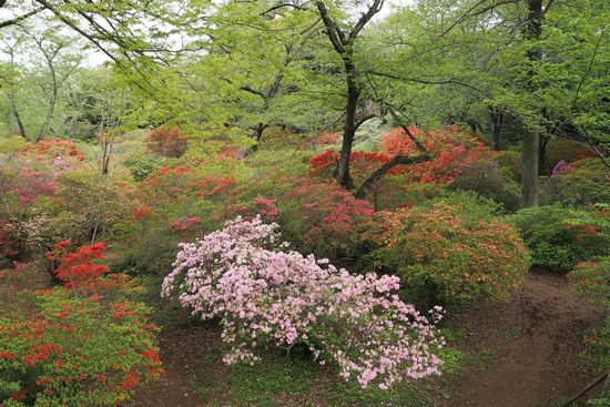 ツツジの群落の中に丸太を組んだ展望台が設けられており、上から見渡せます。