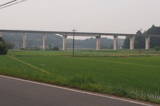 R118は作田川支流の境川沿いに下ってきます。前方の首都圏連絡道の下を通過します。R118は
