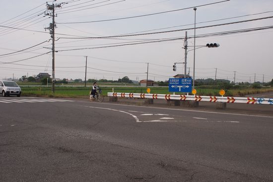 成東からR121で海に向かいます。ここはかなり車の通行の多い道です。作田川沿いにサイクリ