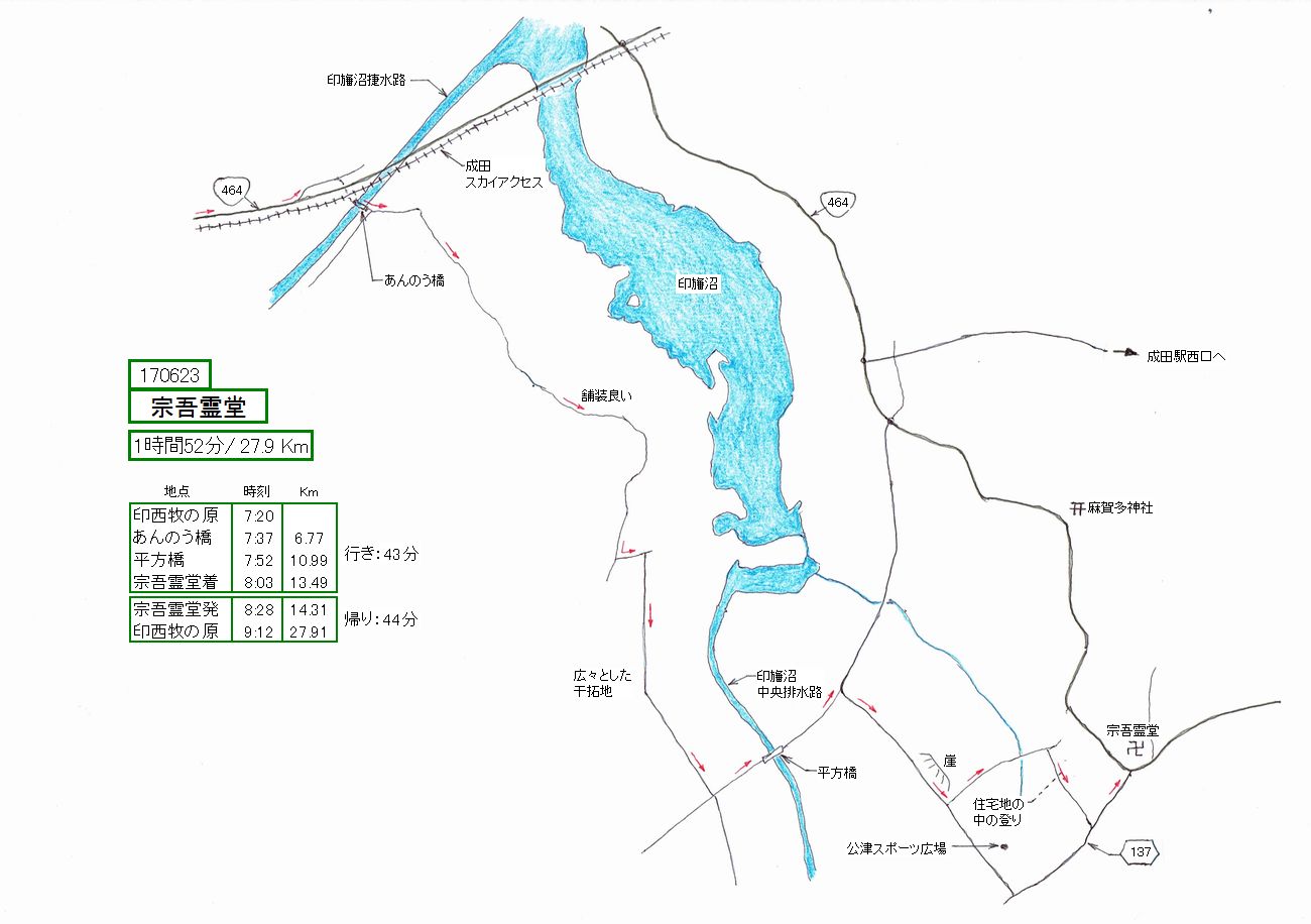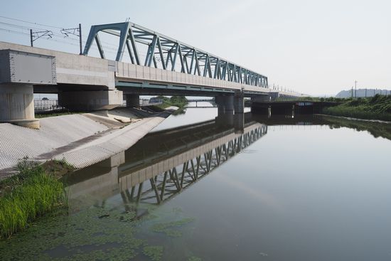 印旛沼捷水路のあんのう橋から成田スカイアクセスの鉄橋を見る。家からここまで僅か17分