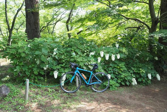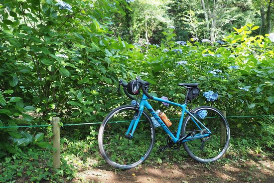 この写真を載せた理由は、ブルーの紫陽花と私の自転車の色が同じだよ、ということで。
