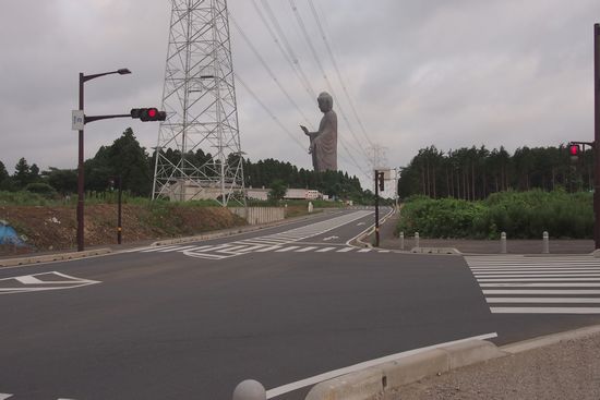 ここは下久野交差点に向かう道です。森の上に牛久大仏が見えてきます。