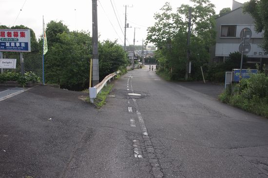 これは下りの坂道です。下りきると、国道125号に出て、道を渡ると予科練平和記念館です。