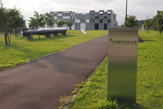 予科練平和記念館です。細長いものは人間魚雷「回天」です。