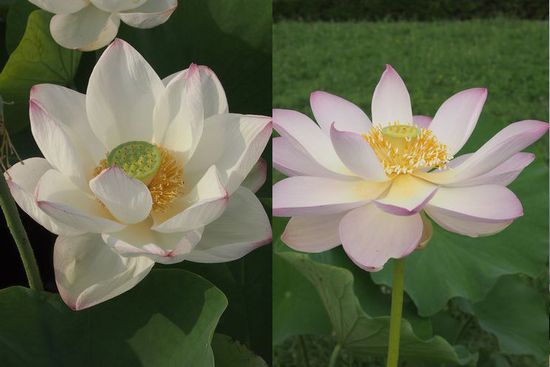 風車の前は水生植物園になっていて、各種の蓮が栽培されています。