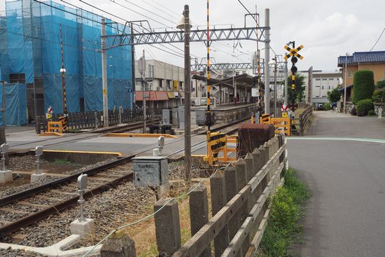 粟野十字路を通過して進むと、東武野田線の踏切ですが、その手前を右折して、別の踏切を