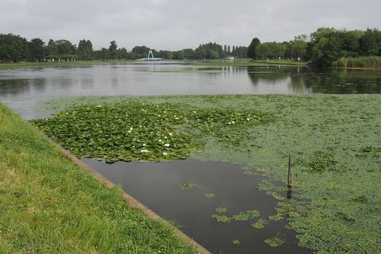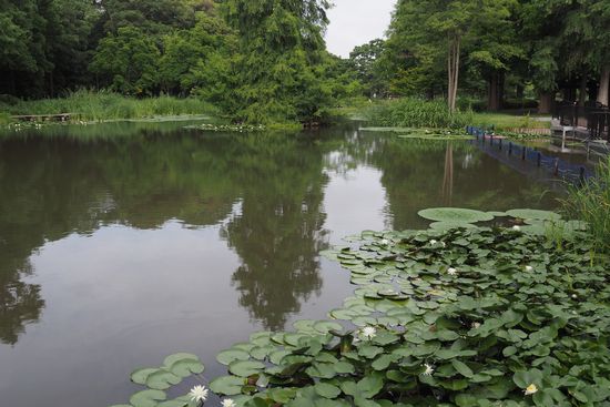 公園の北端まで来ました。ここは水生植物園です。目当てはオニバスの花を見る事。