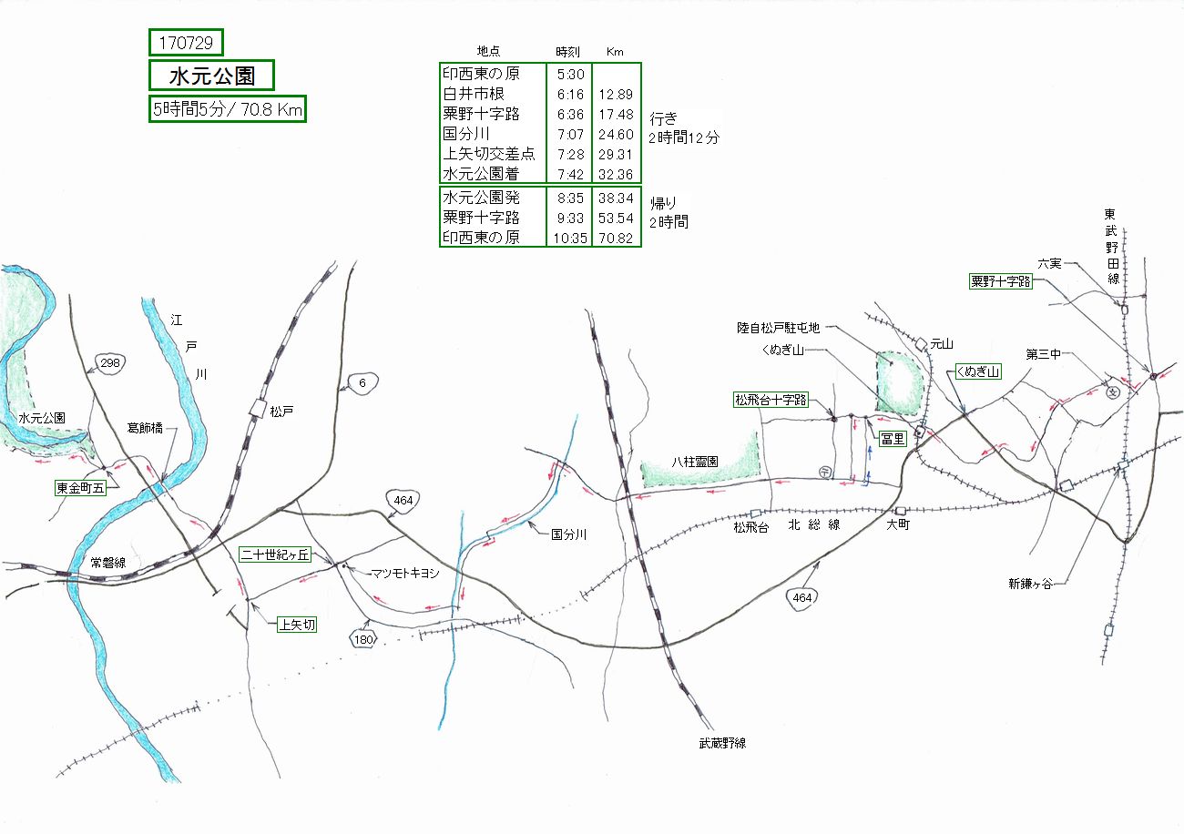 元公園に行って来ました。前回(170706)より改善したのは、粟野十字路からくぬぎ山駅に至る安全に走れる裏道を発見したこと。