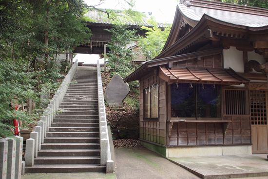 大鷲神社は左の階段を登った山の上にあります。。画面右に半分写っているのが、魂生大明神