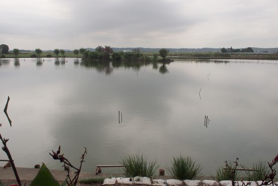 R12は、土手状の盛土の上を走る眺めの良い道です。これは道沿いの甚兵衛沼。