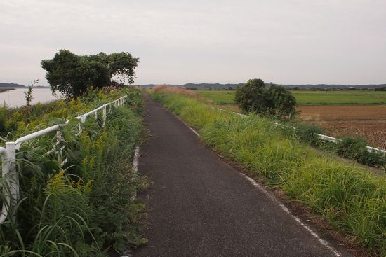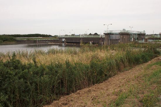 やがて現れるジャリ道を過ぎると酒直水門。ここを渡ると快適なサイクリングロードです。