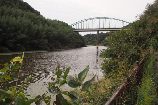 印旛捷水路に入りました。山田橋です。この先で、アケビを採っているご夫婦がいました。