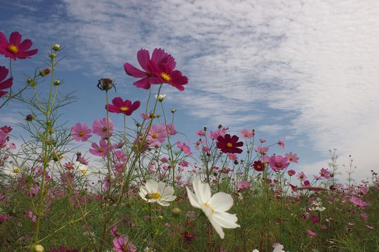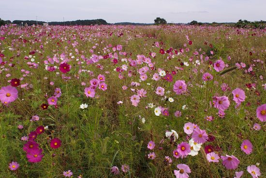 師戸のコスモス畑に着きました。南岸のCR沿いにあれば、見に来る人も多いのでしょうが・・。