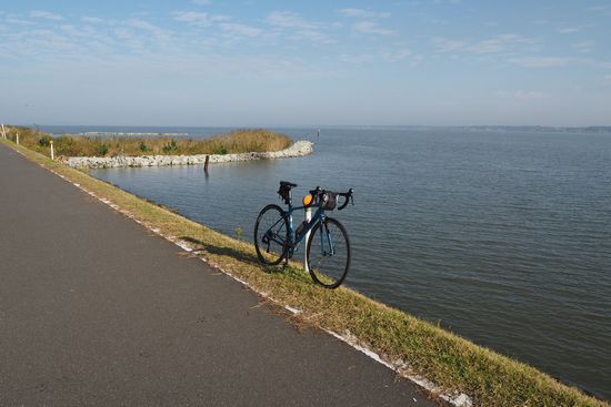 から新利根川河口水門まで、湖岸を16Km程走りましたが、遭遇した自転車乗りは、たった一人でした。