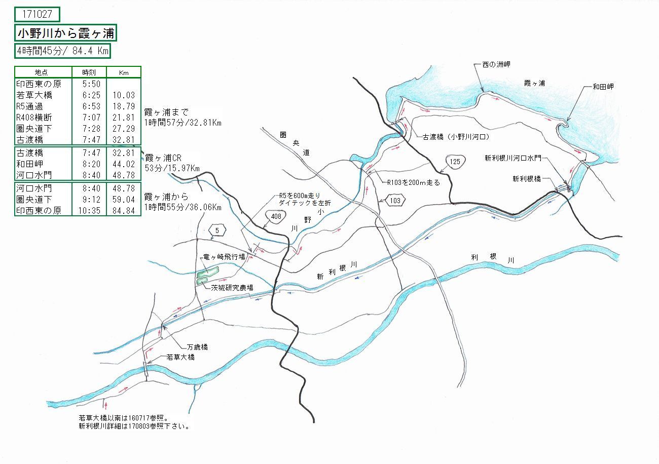 R408を過ぎ、4Km程で圏央道が現れます。川の対岸に人家が増えてきますが、旧江戸崎町に続く家並です。