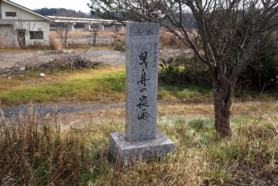 小野川沿いに下って来て、曳舟橋を渡ると右側に「曳舟の夜雨」の碑があります。前回来たときは